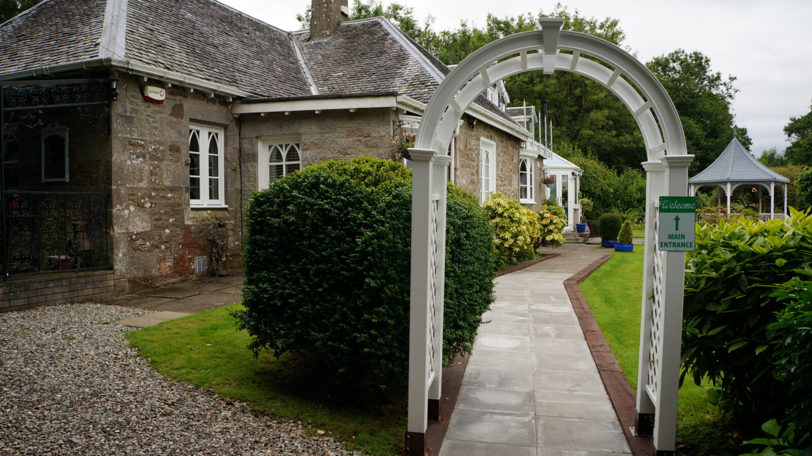 The property is accessed via an electric gate, offering secure parking for all guest vehicles. A mature enclosed garden features a lawned area, colourful flowers and shrub beds.